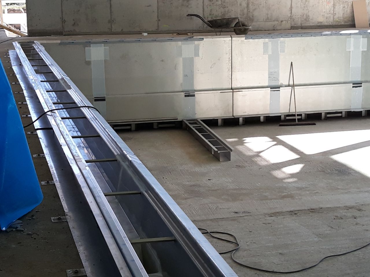 V súčasnosti sa realizuje montáž nerezovej časti stien plaveckého bazéna, montáž podlahového vykurovania, montáž tepelnej izolácie strechy a hydroizolácie strešného plášťa plavárenskej haly, betonáž podlahy v technologickej časti, montáž opláštenia plavárenskej haly, vonkajšia kanalizácia, podkladové vrstvy spevnených plôch.