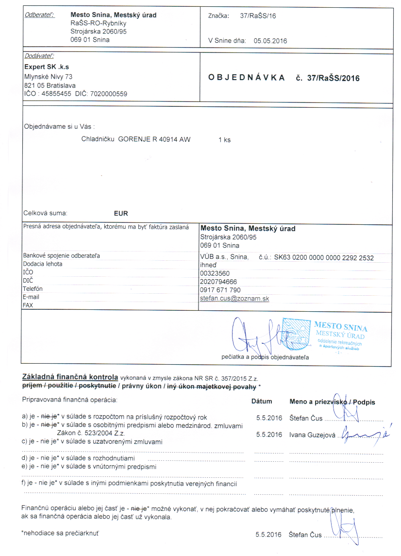 Mesto Snina, RaŠS-RO, Strojárska 2060, 06901 Snina