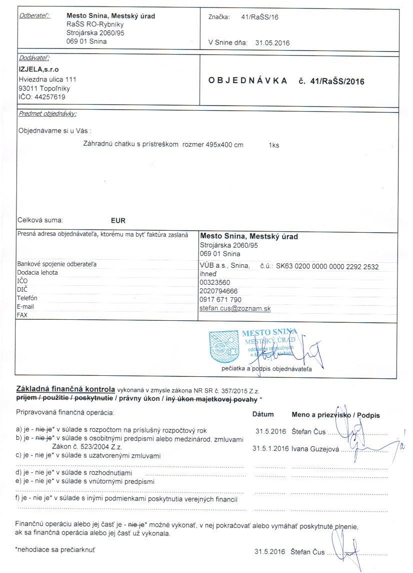 Detail objednávkyč.: 41-RaŠS-2016