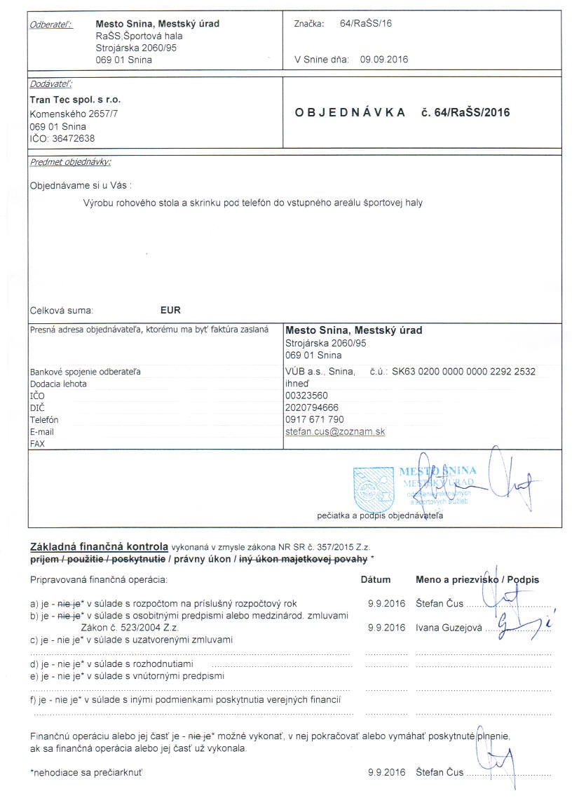 Detail objednávkyč.: 64-RaŠS-2016