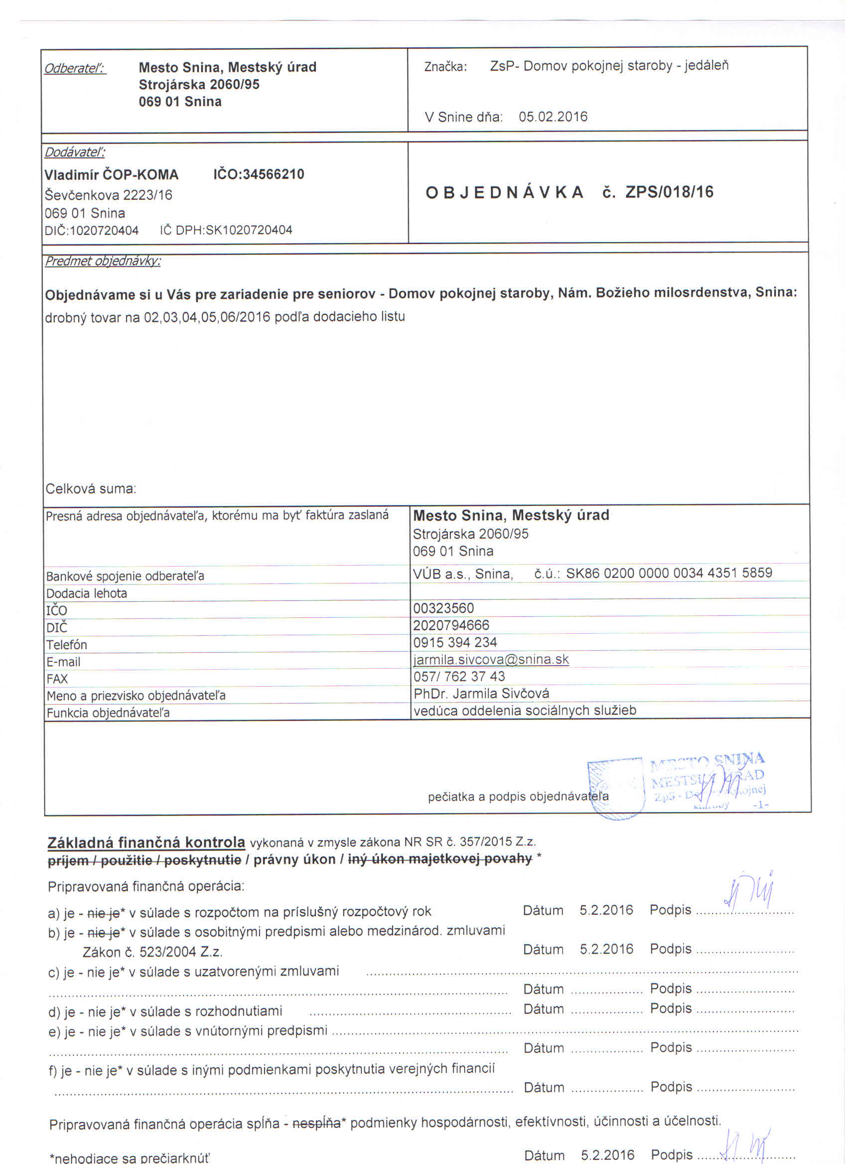 Mesto Snina, Mestský úrad, Strojárska 2060/95, 069 01 Snina