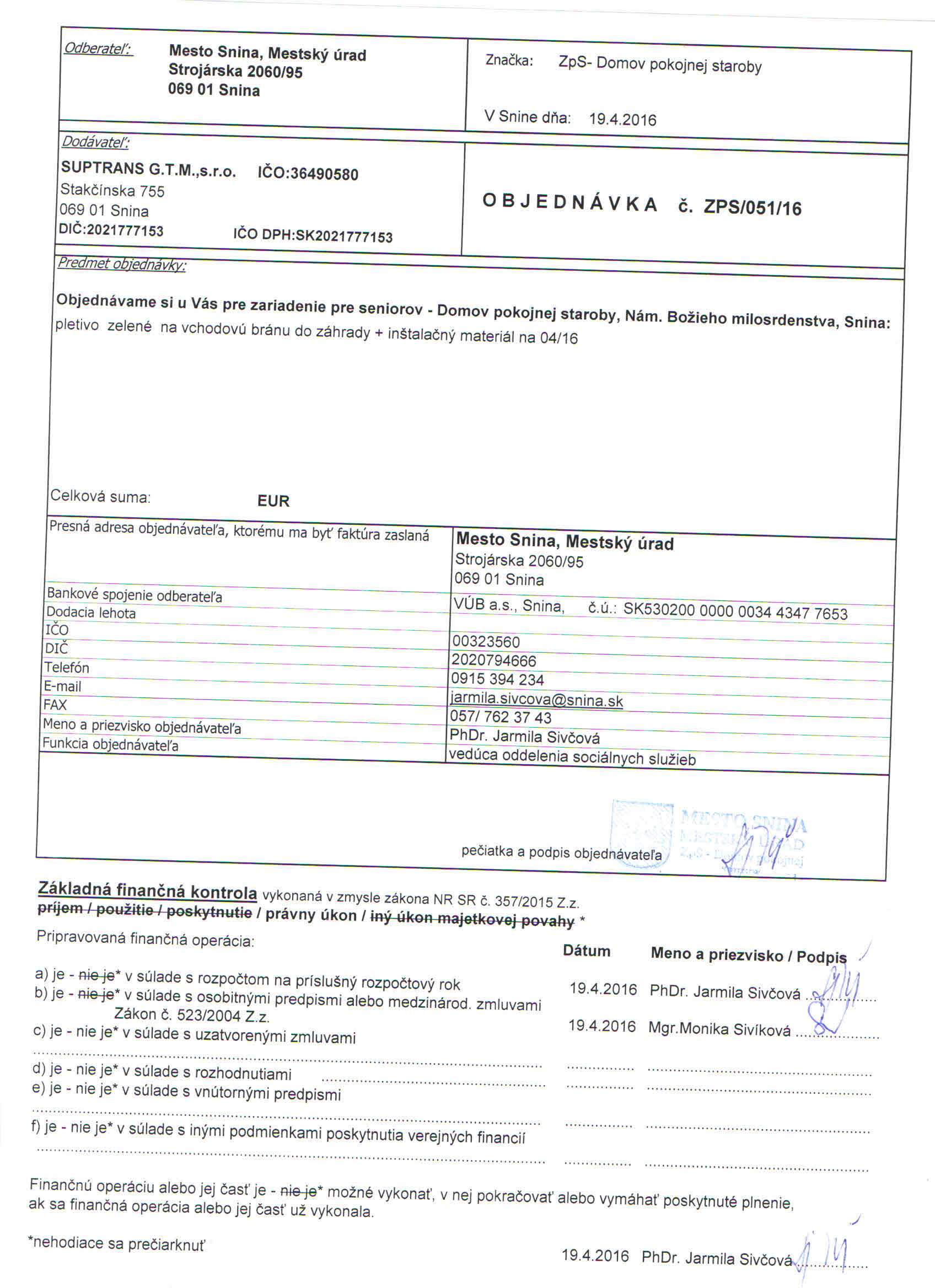 Mesto Snina, Mestský úrad Snina, Strojárska 2060/95, 069 01 Snina