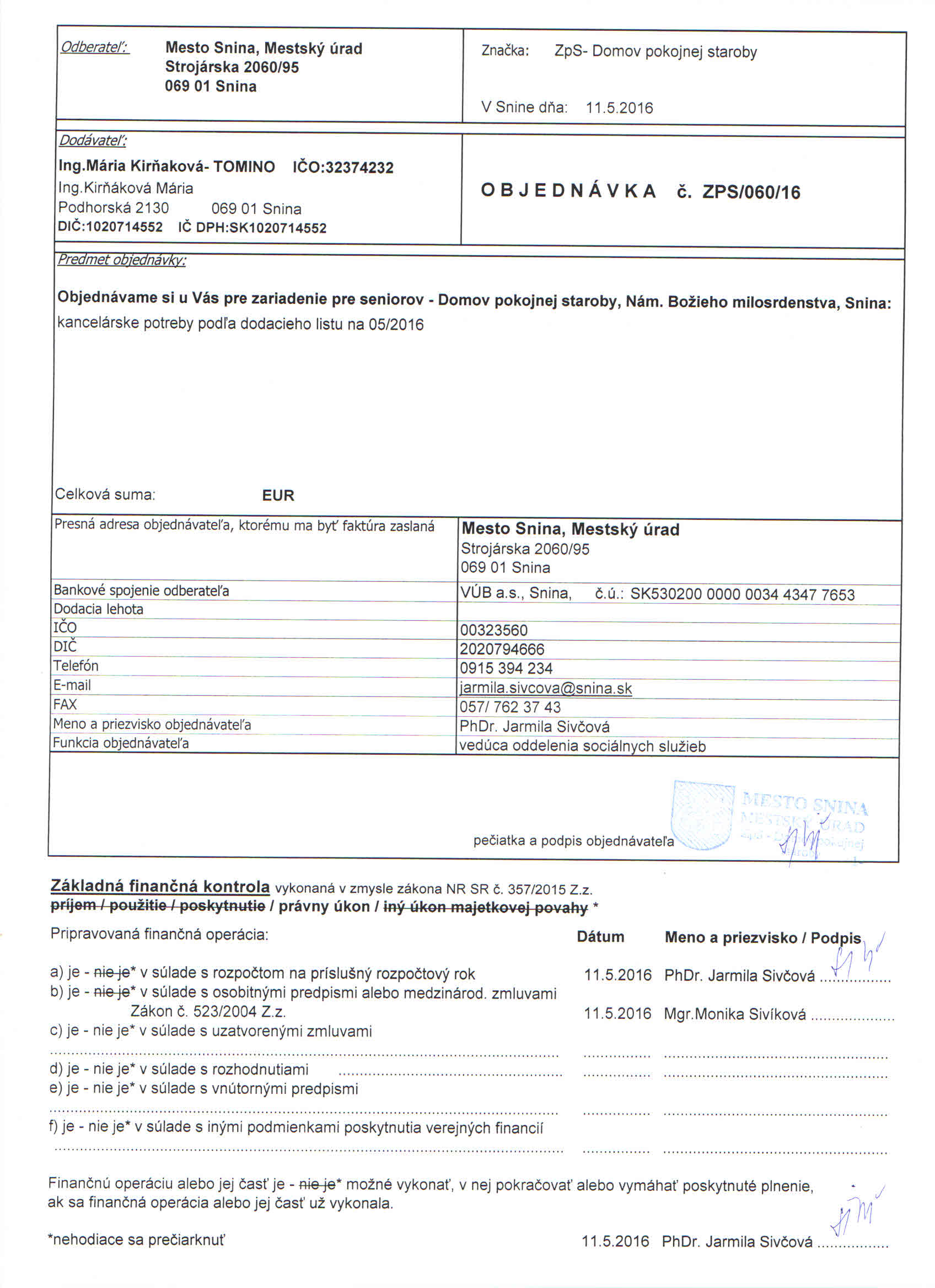 Detail objednávkyč.: ZPS/060/16