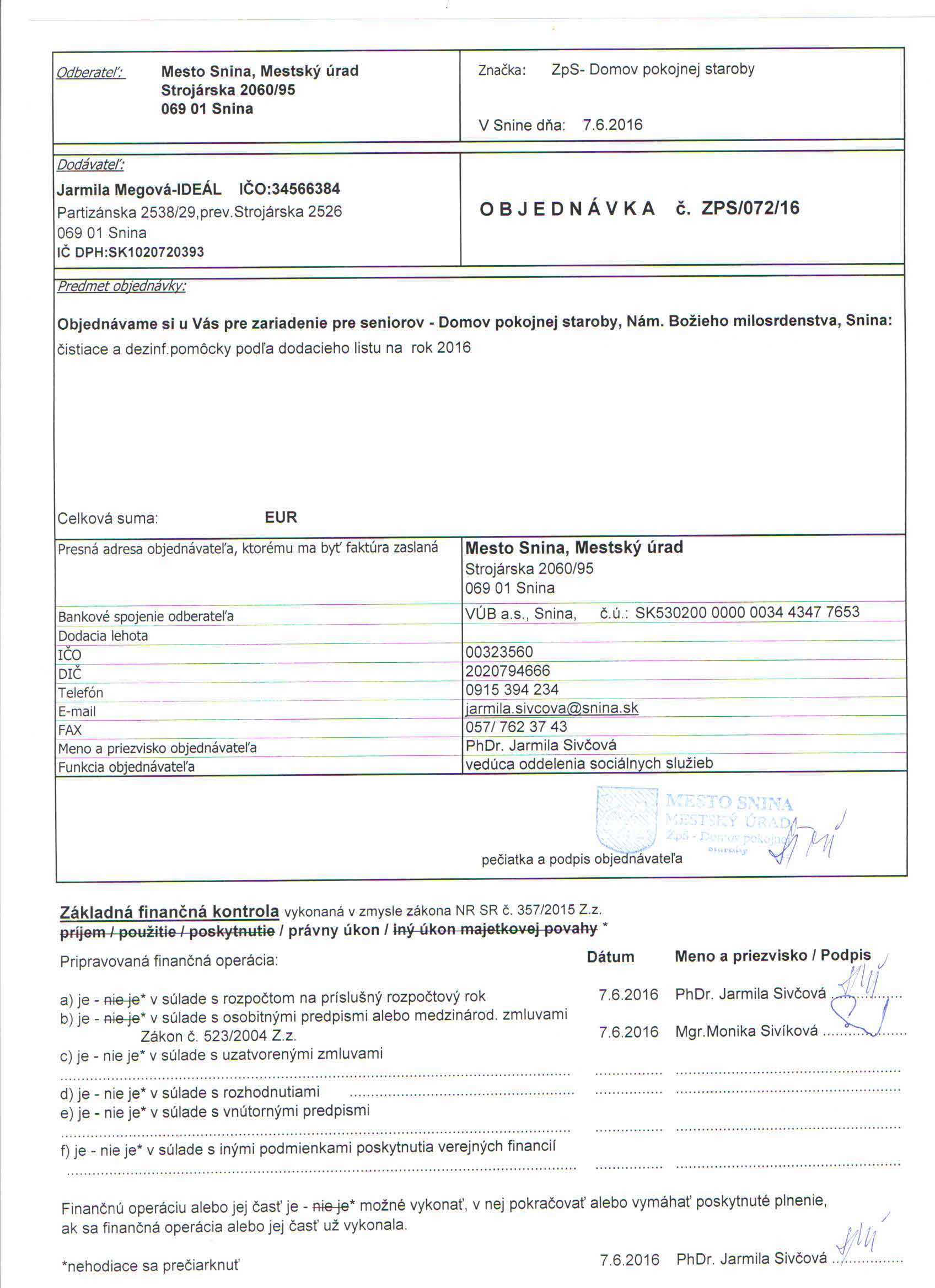 Detail objednávkyč.: ZPS/072/16