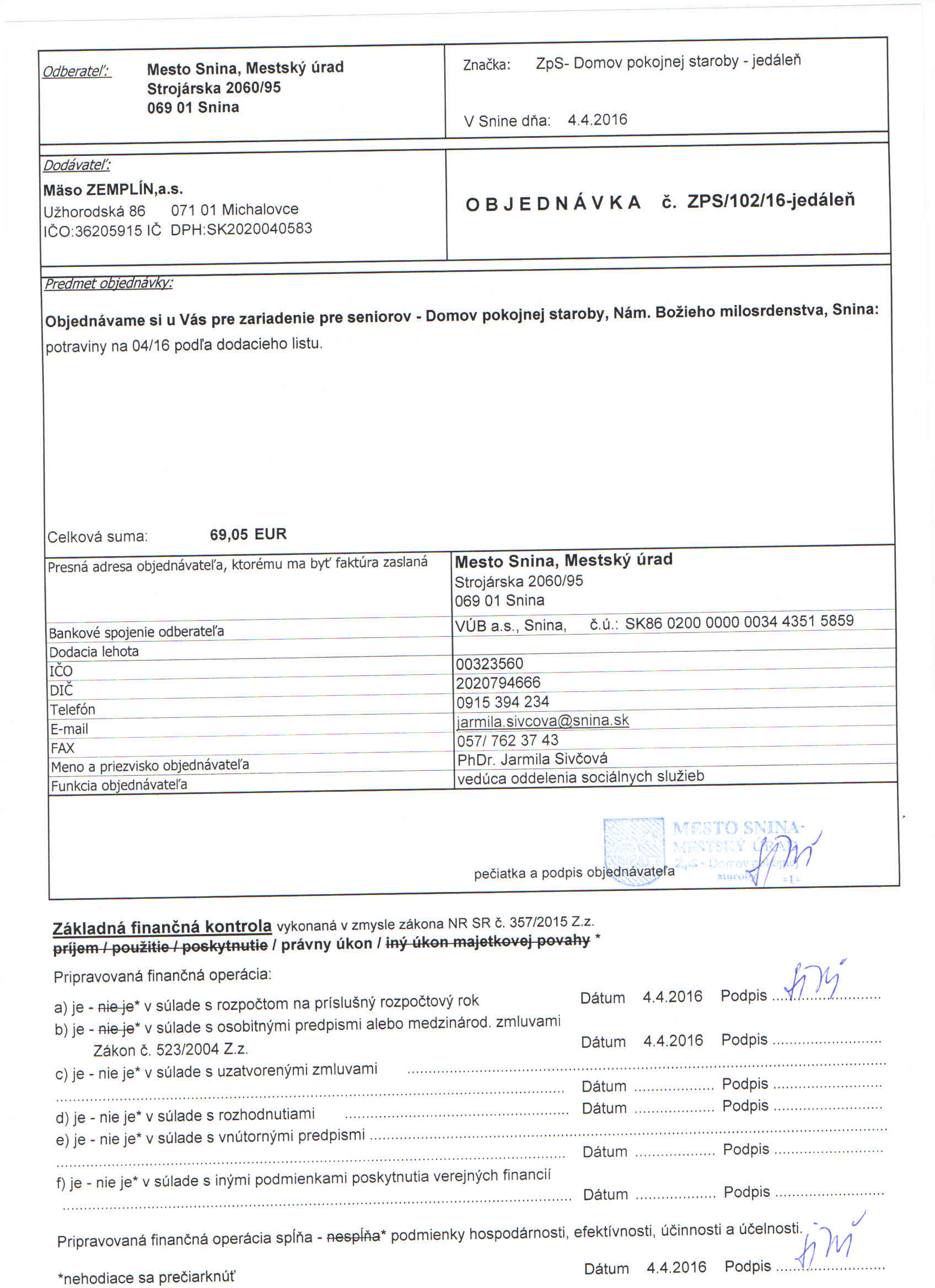 Detail objednávkyč.: ZPS/102/16-jedáleň