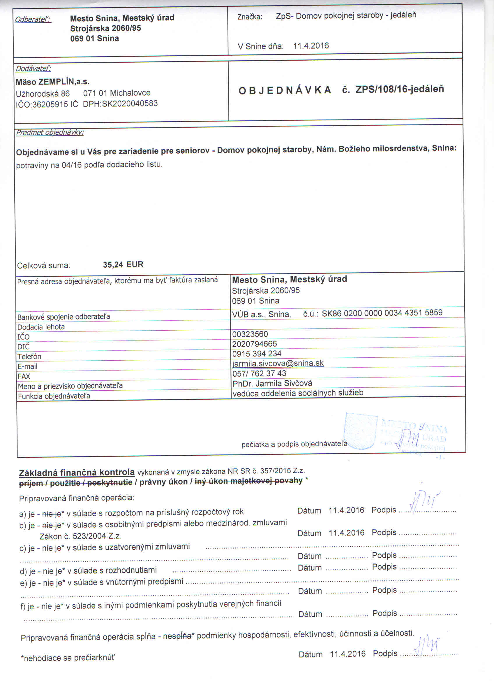 Detail objednávkyč.: ZPS/108/16-jedáleň