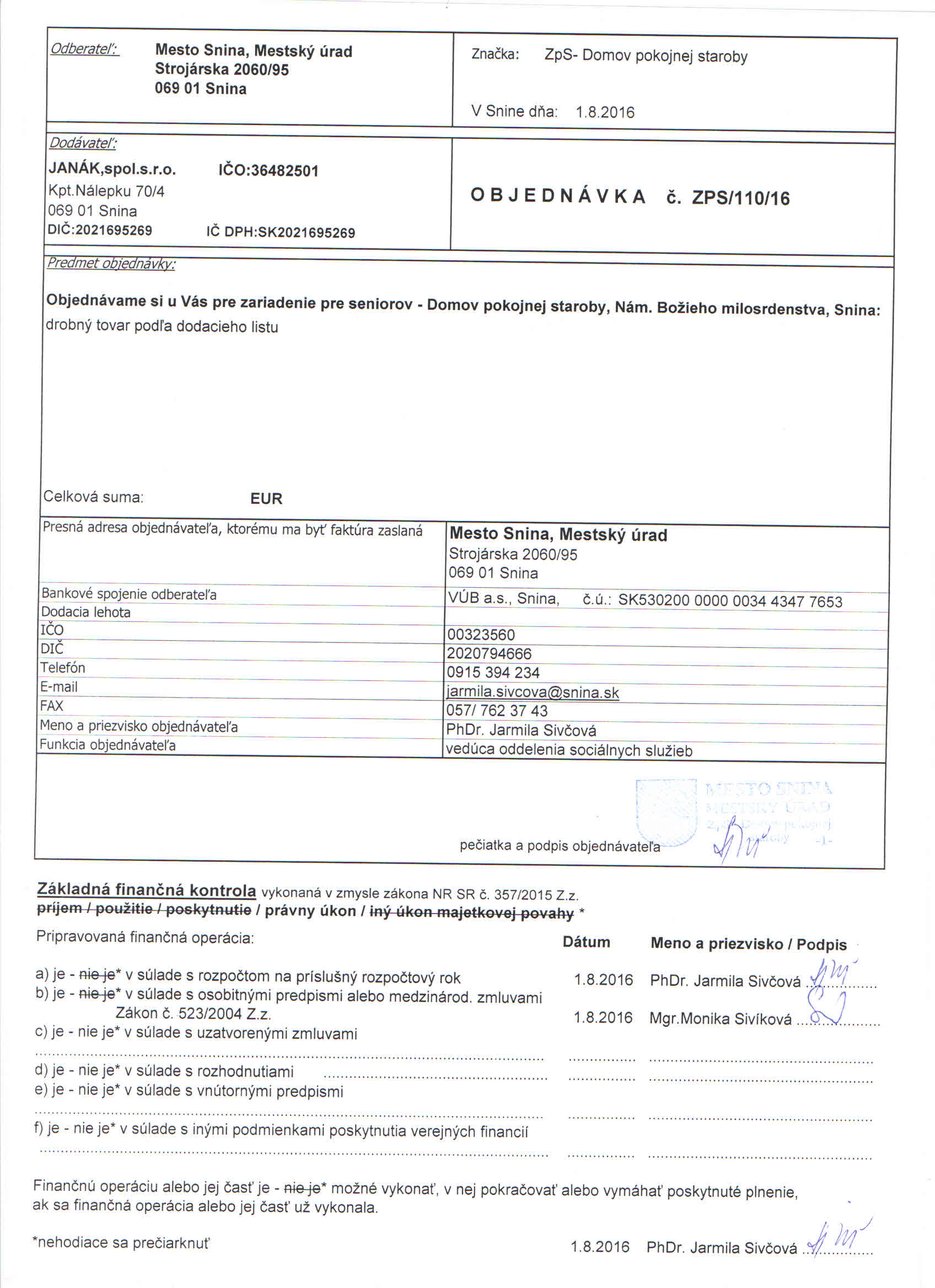 JANÁK, spol. s.r.o., Kpt. Nálepku 70/4, 069 01 Snina