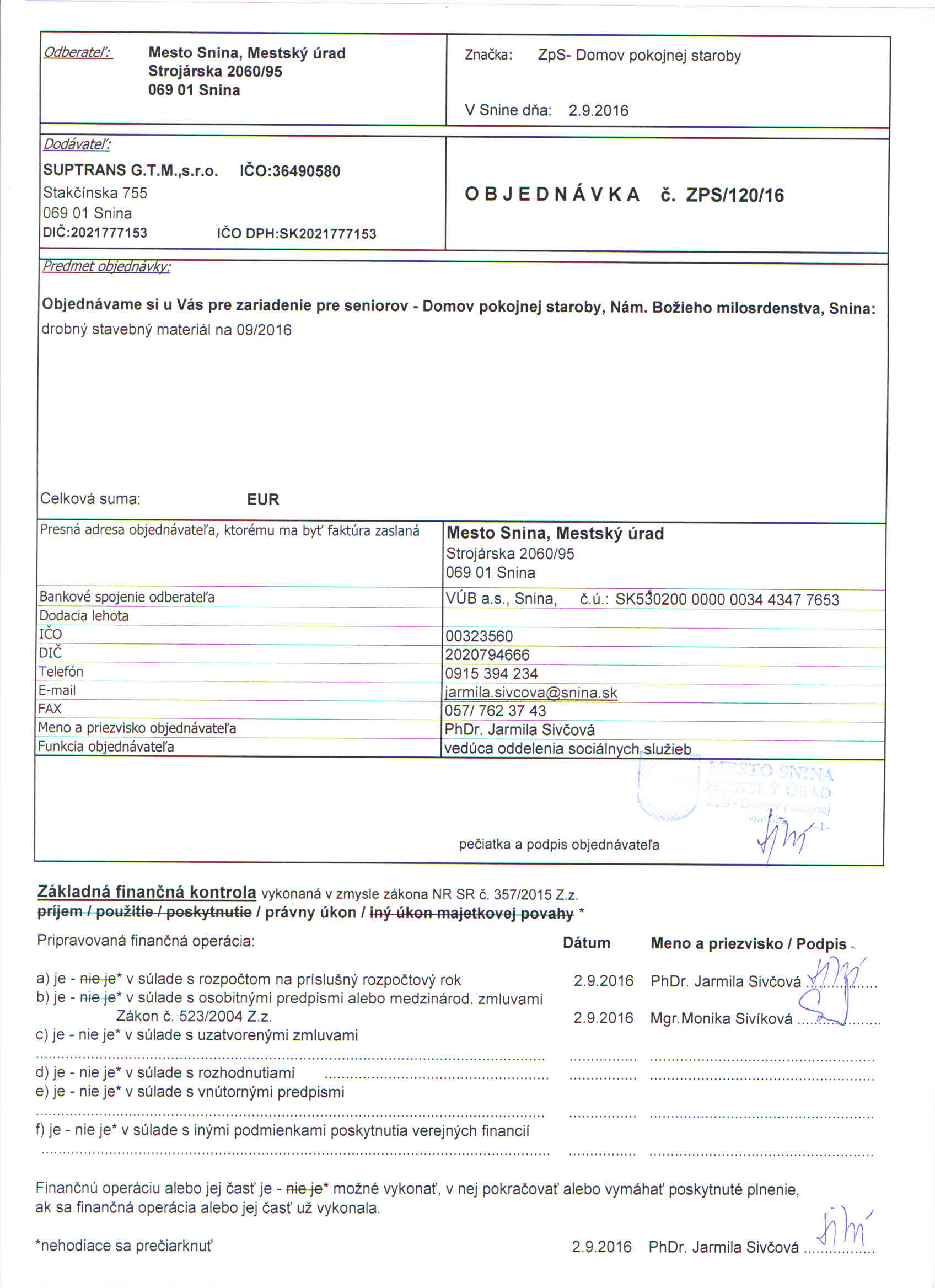 SUPTRANS G.T.M., s.r.o., Stakčínska 755, 069 01 Snina