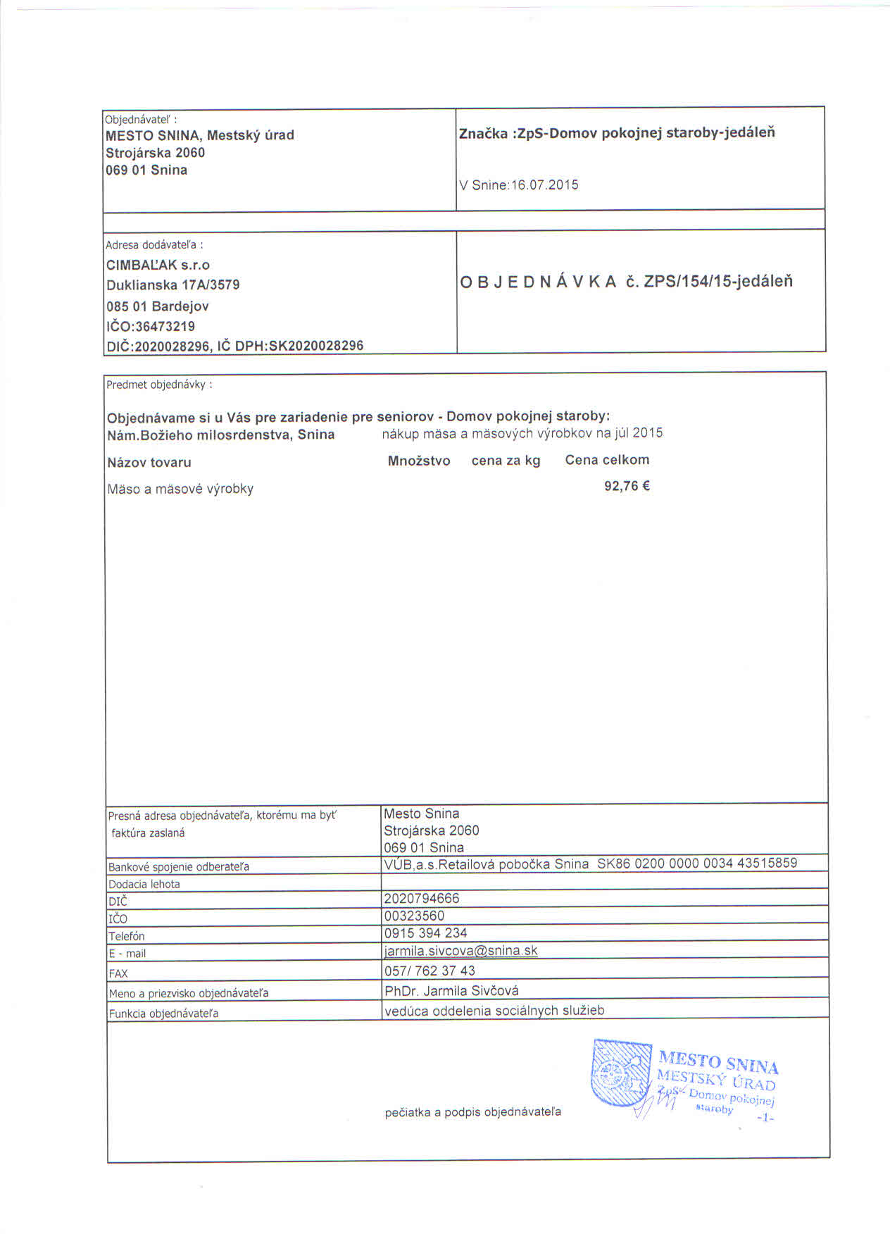 Detail objednávkyč.: ZPS/154/15-jedáleň