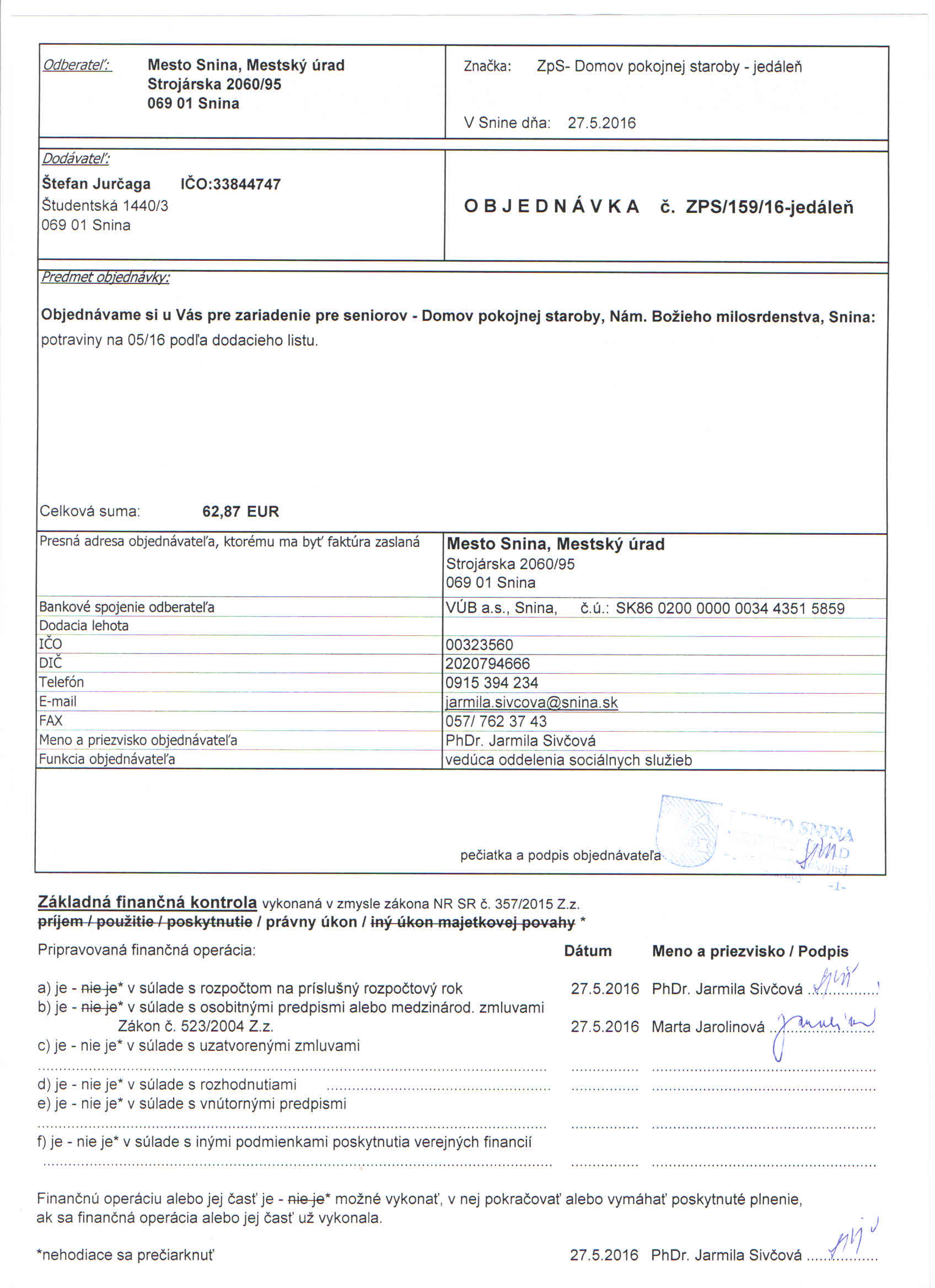 Detail objednávkyč.: ZPS/159/16-jedáleň
