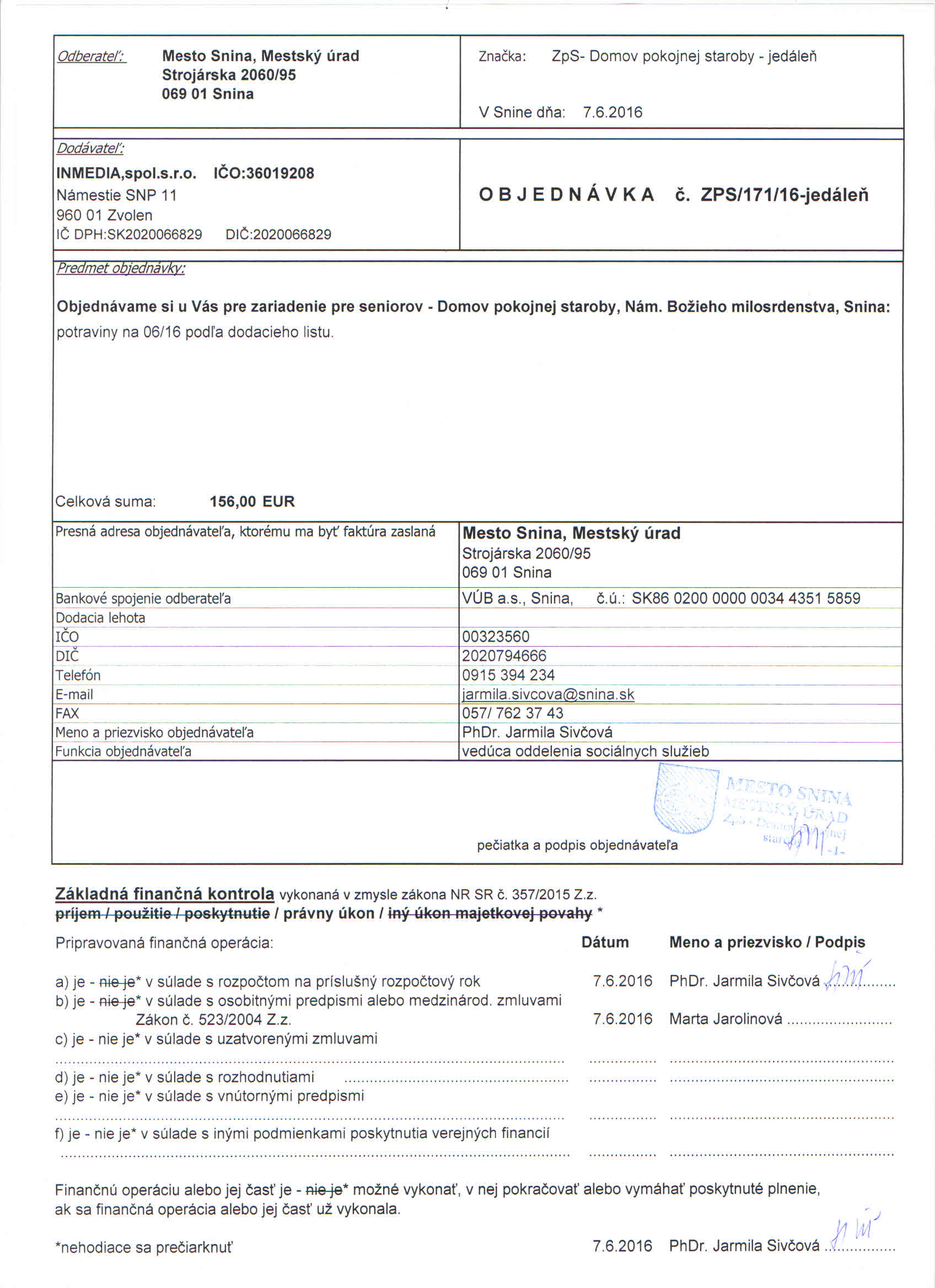 Detail objednávkyč.: ZPS/171/16-jedáleň