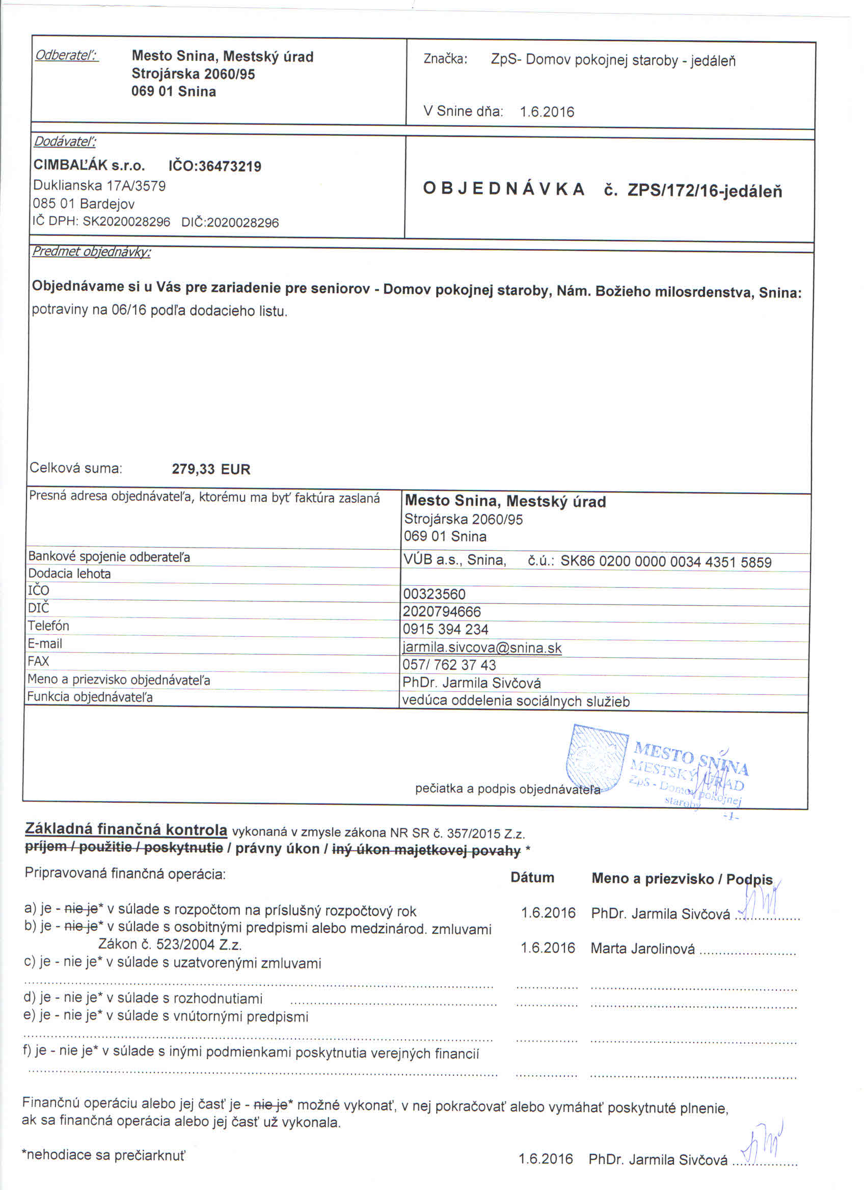Detail objednávkyč.: ZPS/172/16-jedáleň