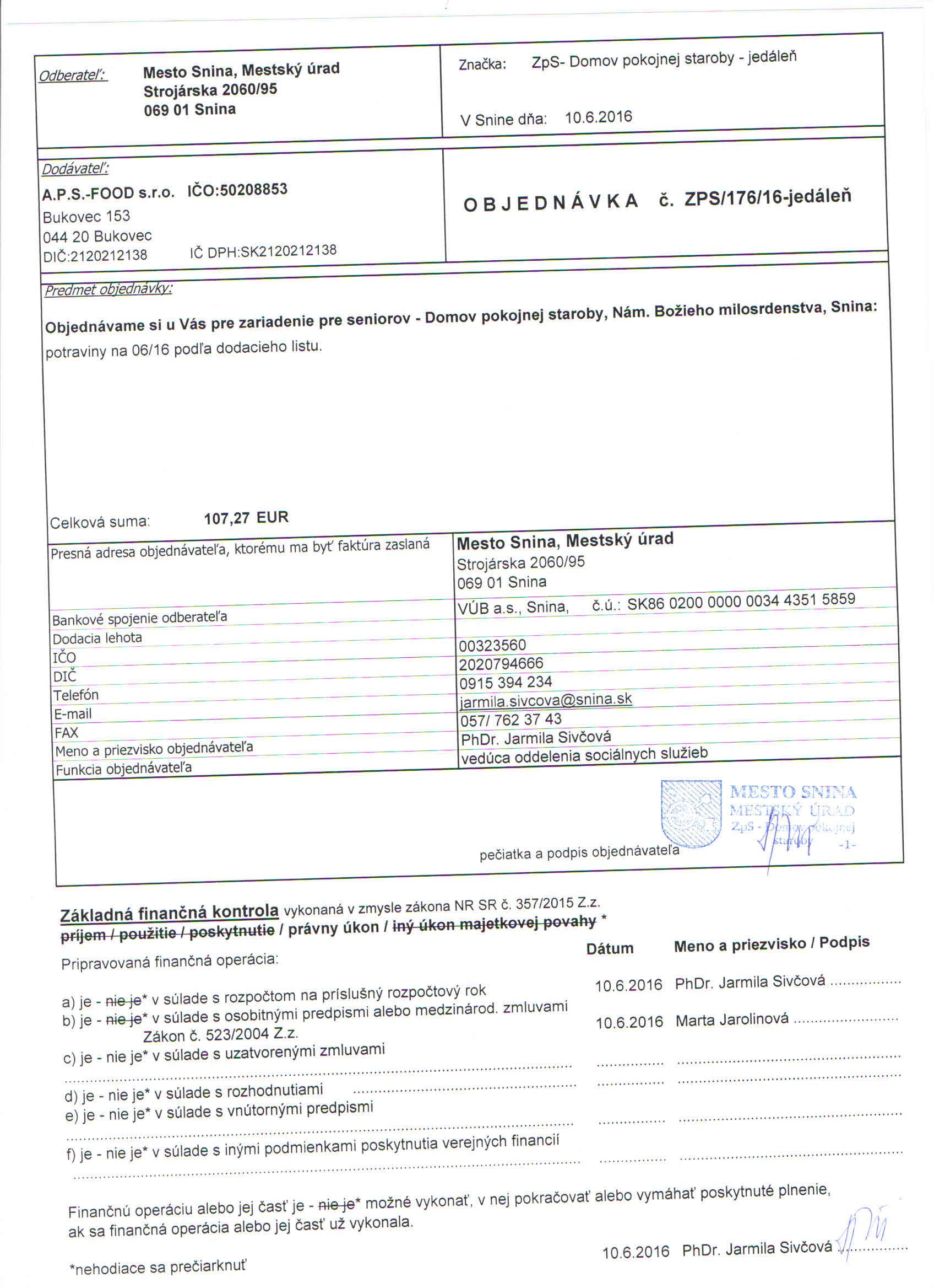 Detail objednávkyč.: ZPS/176/16-jedáleň