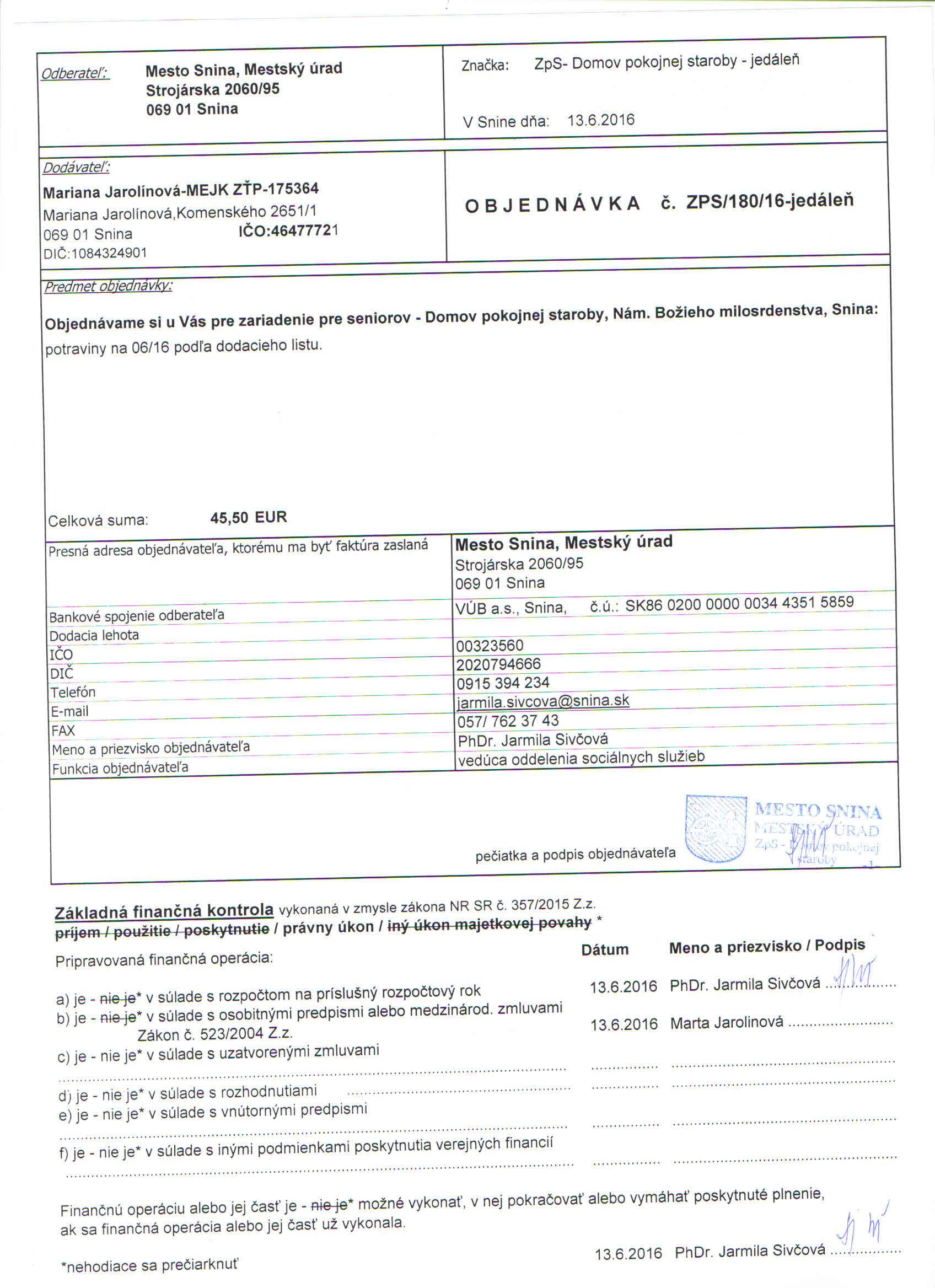 Detail objednávkyč.: ZPS/180/16-jedáleň