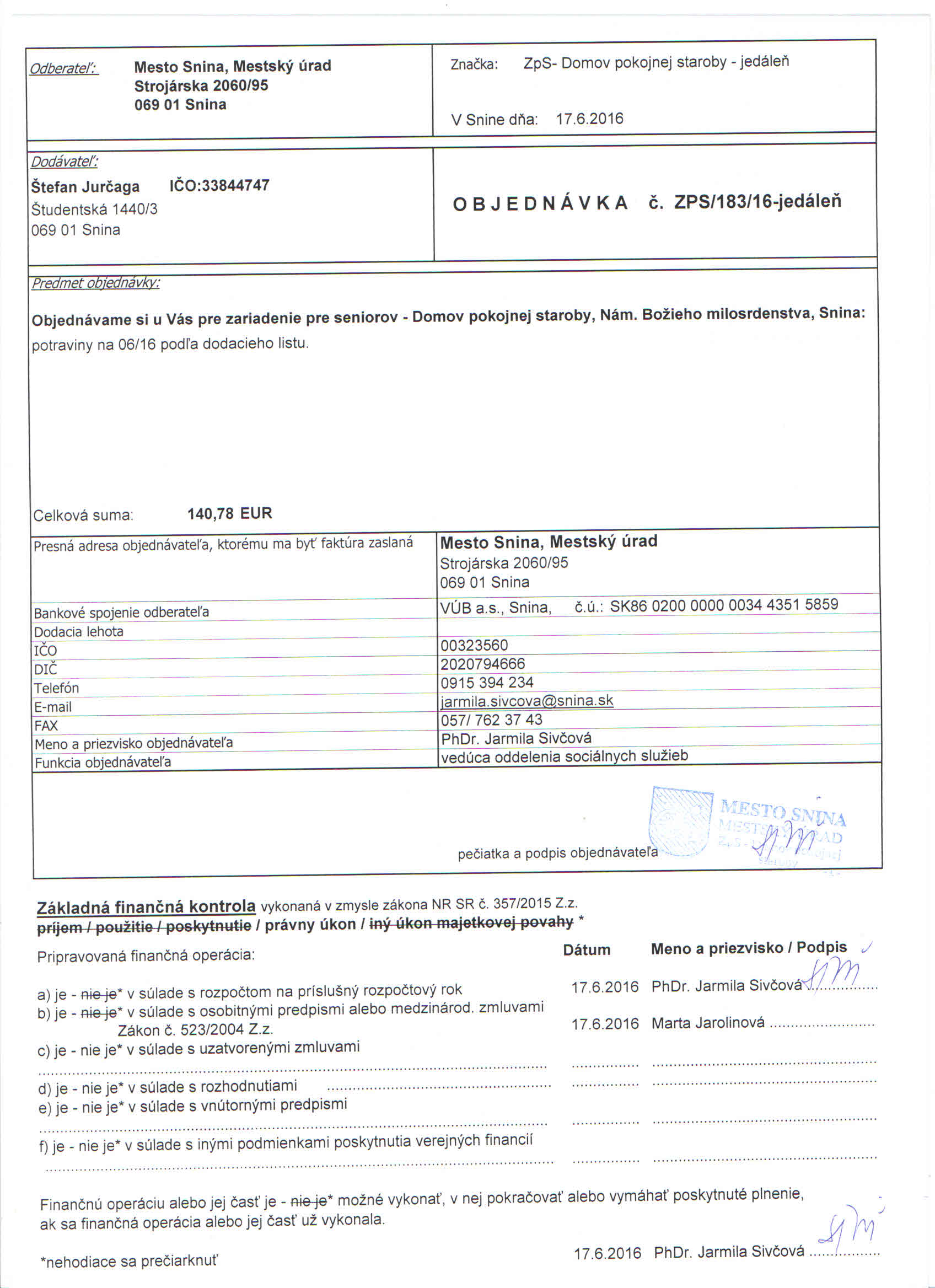 Detail objednávkyč.: ZPS/183/16-jedáleň