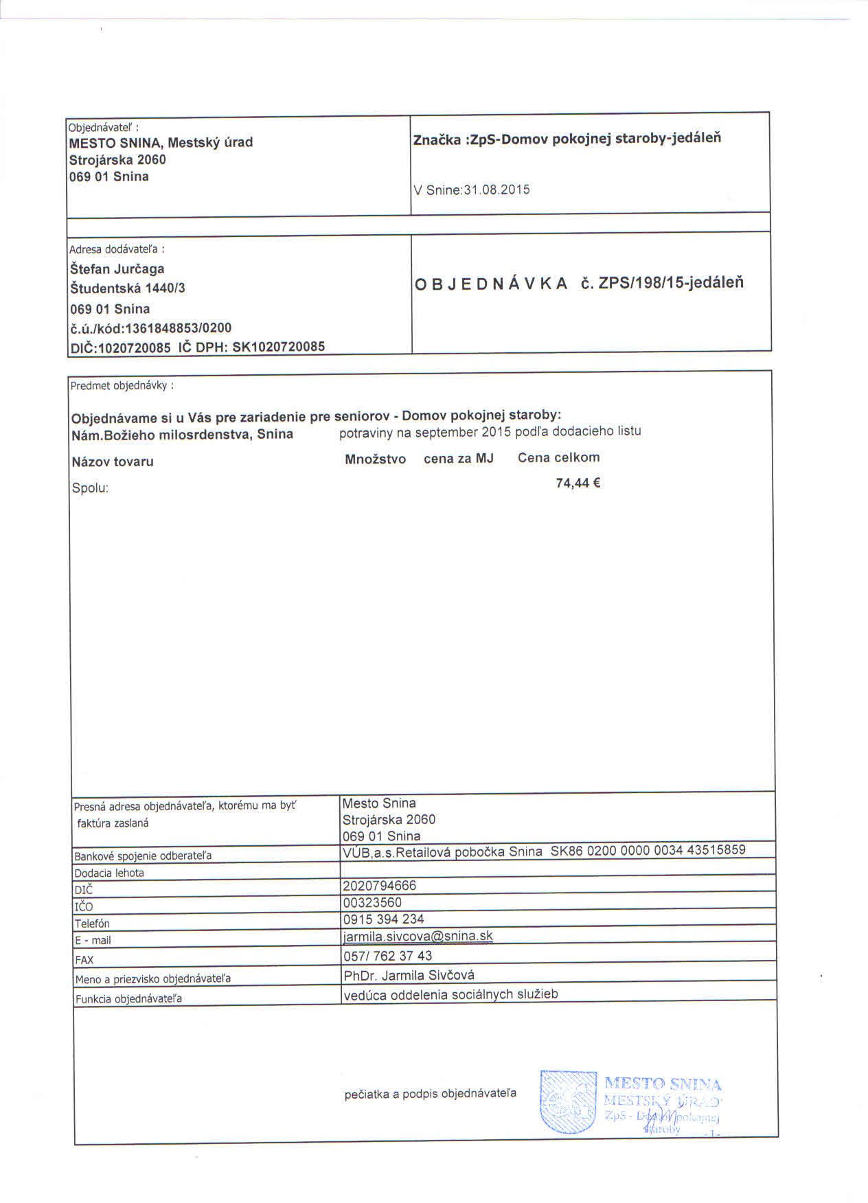 Detail objednávkyč.: ZPS/198/15-jedáleň