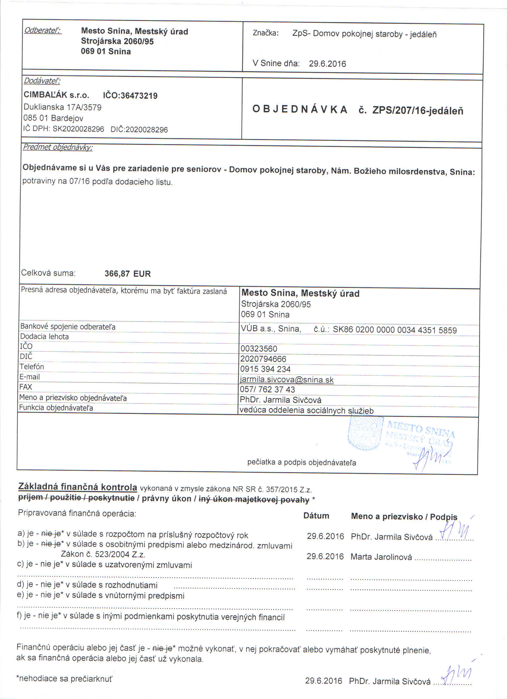 Detail objednávkyč.: ZPS/207/16-jedáleň