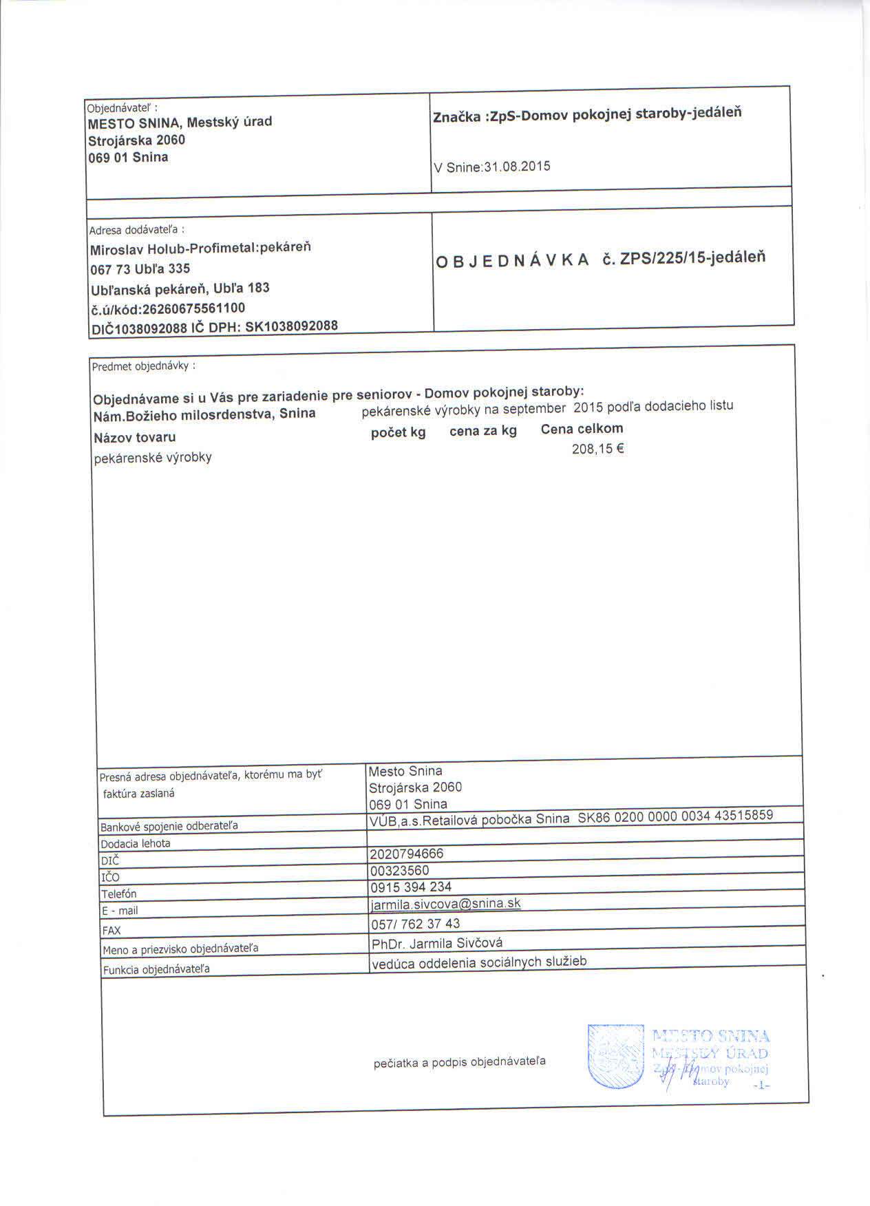 Detail objednávkyč.: ZPS/225/15-jedáleň
