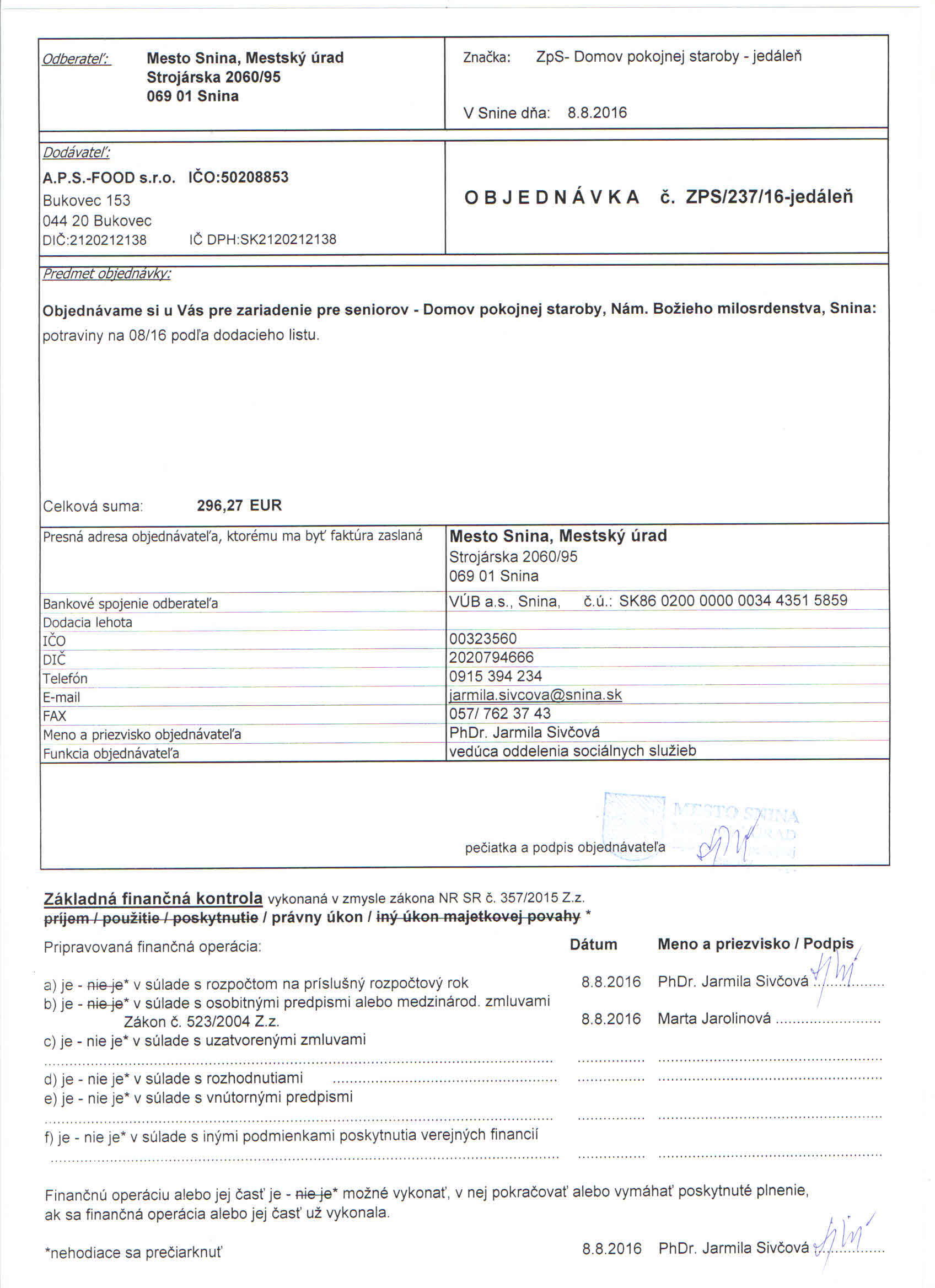 Detail objednávkyč.: ZPS/237/16-jedáleň