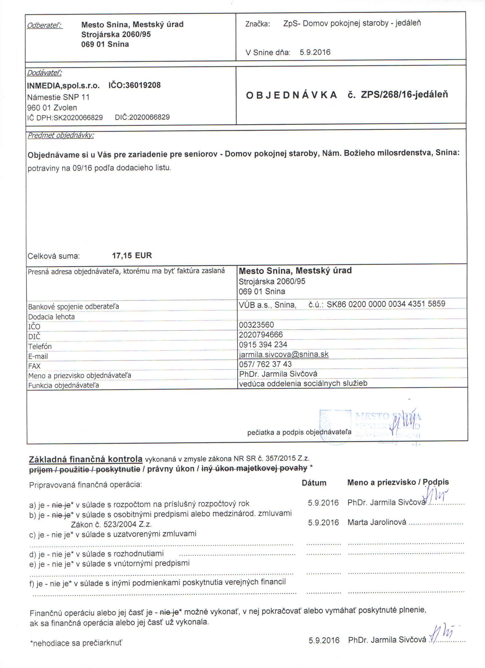 Detail objednávkyč.: ZPS/268/16-jedáleň