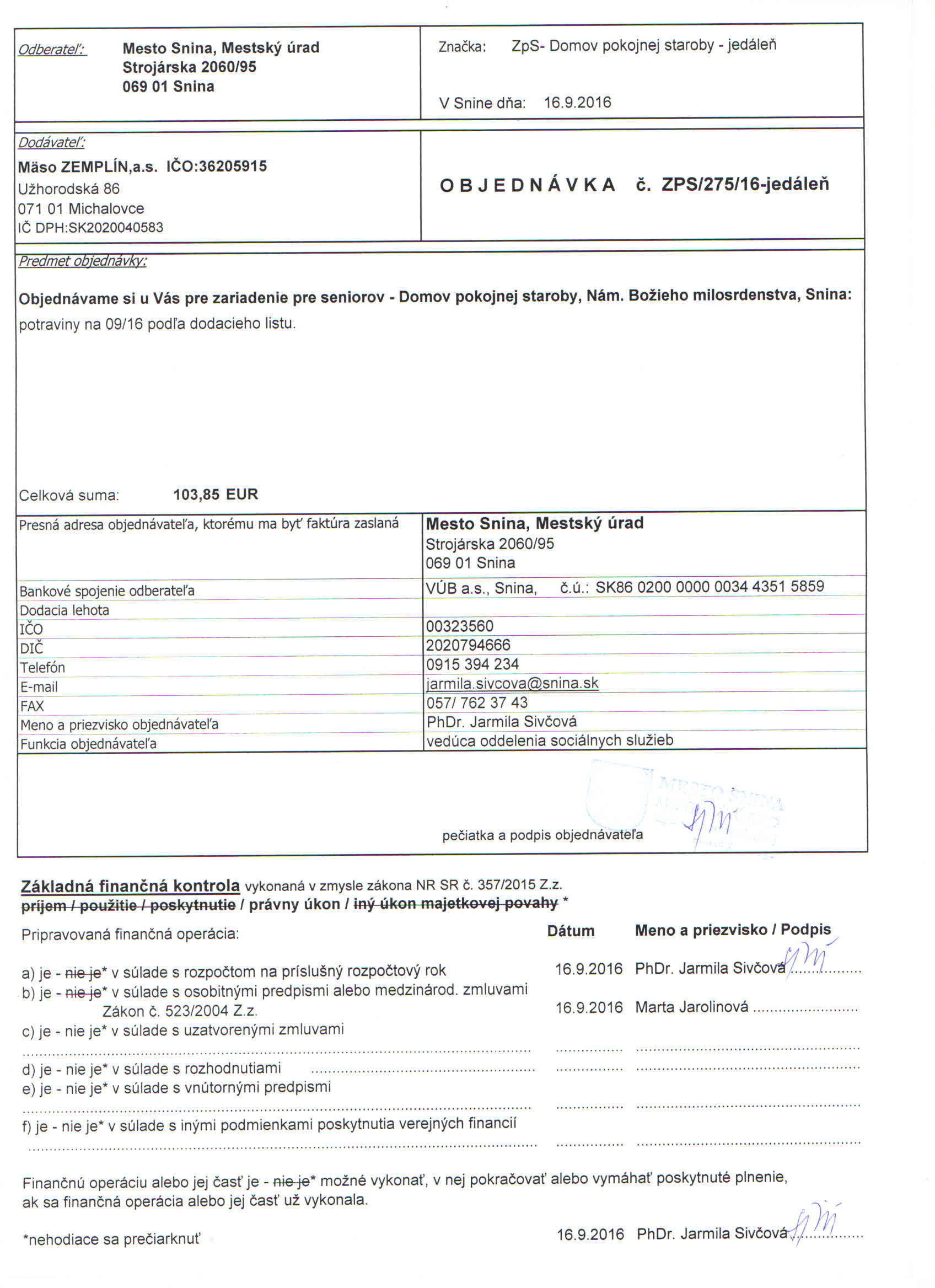 Detail objednávkyč.: ZPS/275/16-jedáleň