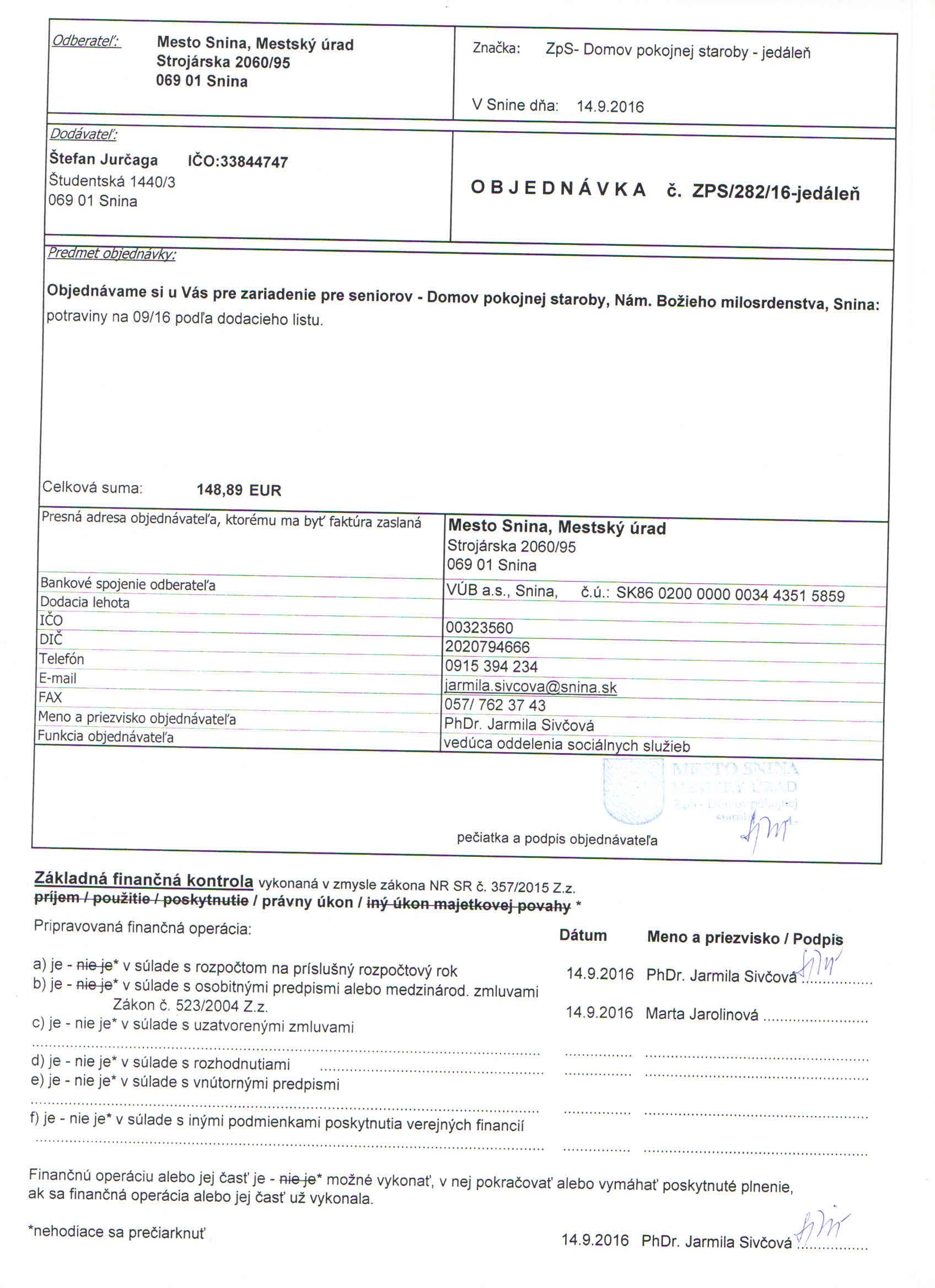 Detail objednávkyč.: ZPS/282/16-jedáleň