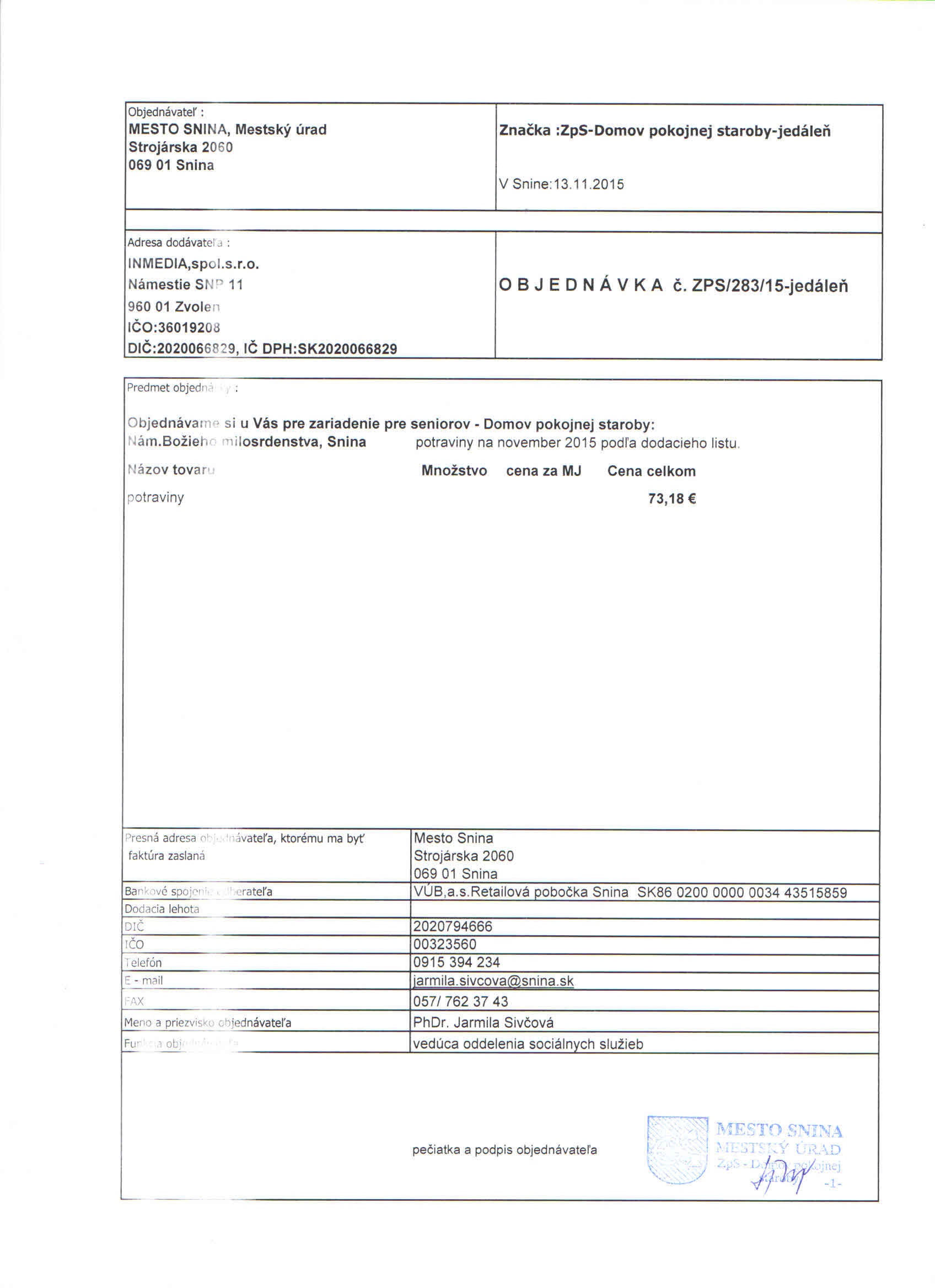 Detail objednávkyč.: ZPS/283/15-jedáleň