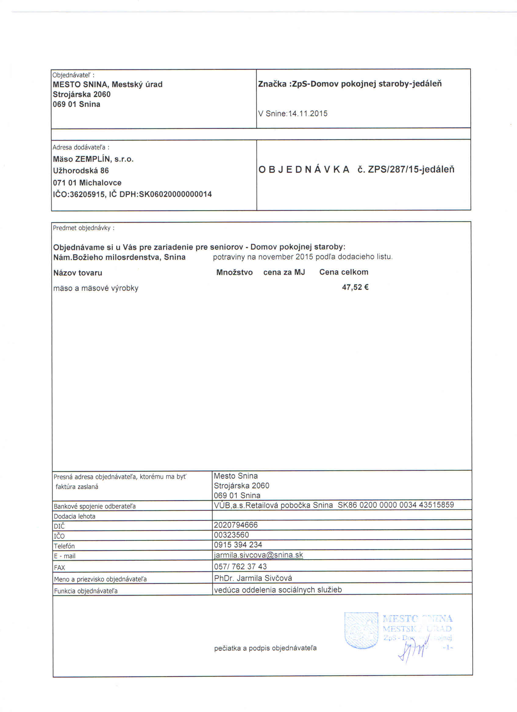 Detail objednávkyč.: ZPS/287/15-jedáleň